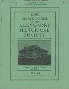 Accession Number: 2006.3.17 Quantity: 2 Classification: Dundas, Glengarry, Stormont Journal Publication: Glengarry Historical Society Journal